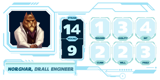 Norghar Rhod was born to the Garth Clan on Drall. He spent most of his youth in school learning the art of negotiation and, once of age, was taken on in an apprenticeship to his clan’s Diplomatic Representative Marcha. While traveling with the envoy, the group was set upon by pirates; robbed, wounded and left for dead. As the world went black, he was saved by crime lord Naleth's crew, the Kryats, and later awoke on Coruscant, indebted to Naleth. To repay the debt, he works selling weapons and droids on the black market.Norghar is played by Berlonator. Berlonator enjoys wearing onesies, dancing for 30 minutes straight to crab rave, and letting Scarlett write his bio. Check out Berlonator's content at the links below, or open the PDF to view Norghar's full character sheet.